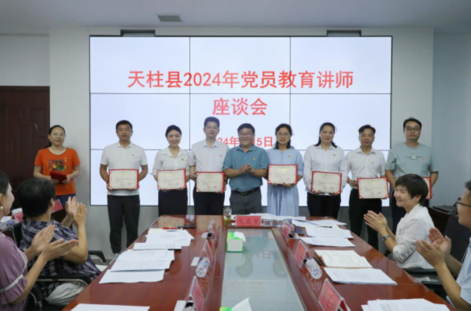 7月(yuè)5日(rì),天柱縣召開(kāi)2024年(nián)黨員(yuán)教育講師(shī)座談會(huì),會(huì)上(shà€ng)為(wèi)評選的(de)12名“優秀黨員(yuán)教育講師(shī)”頒發證書(shū),講師(shī)們圍繞黨員(yuán)©教育講師(shī)工(gōng)作(zuò)作(zuò)了(le)交流發言,大(dà)家(jiā)紛紛表示黨員(yuán)教育講師(s hī)是(shì)一(yī)份榮譽和(hé)擔當,以後将會(huì)更加努力的(de)發揮好(hǎo)講師(shī)作(zuò)用(yòng)助力黨教事(shì)<業(yè)邁上(shàng)新台階。